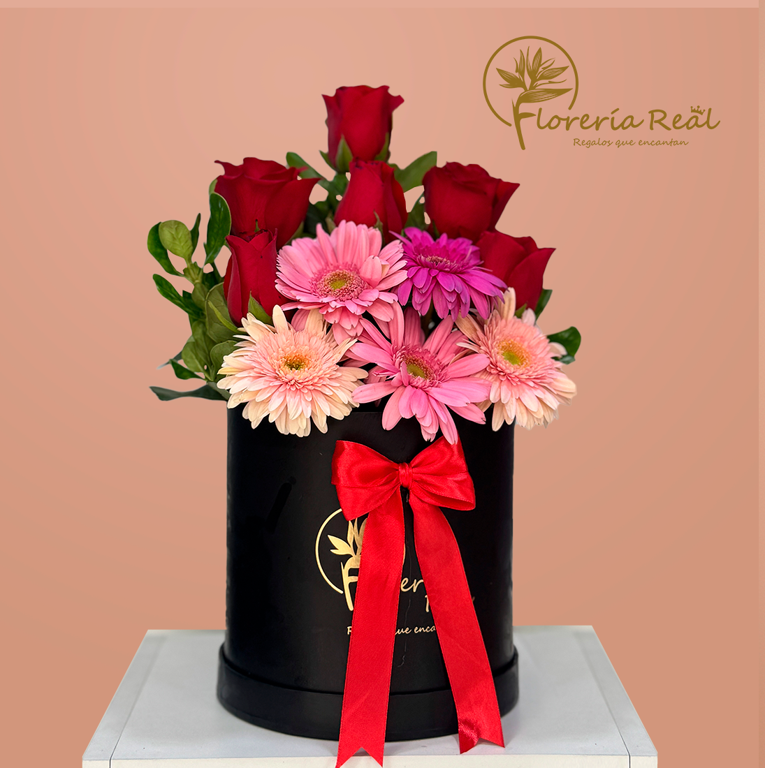 Rosas rojas de estación y gerberas ( acorde a disponibilidad)